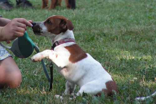 S kým výcvikem jsme začali už od štěněčího věku. Roxy jsme si pořídila o prázdninách roku 2009 a hned v srpnu jsme poprvé vyrazili do štěněčí školky, kde se naučila základy jako sedni, lehni, k noze, zůstaň.